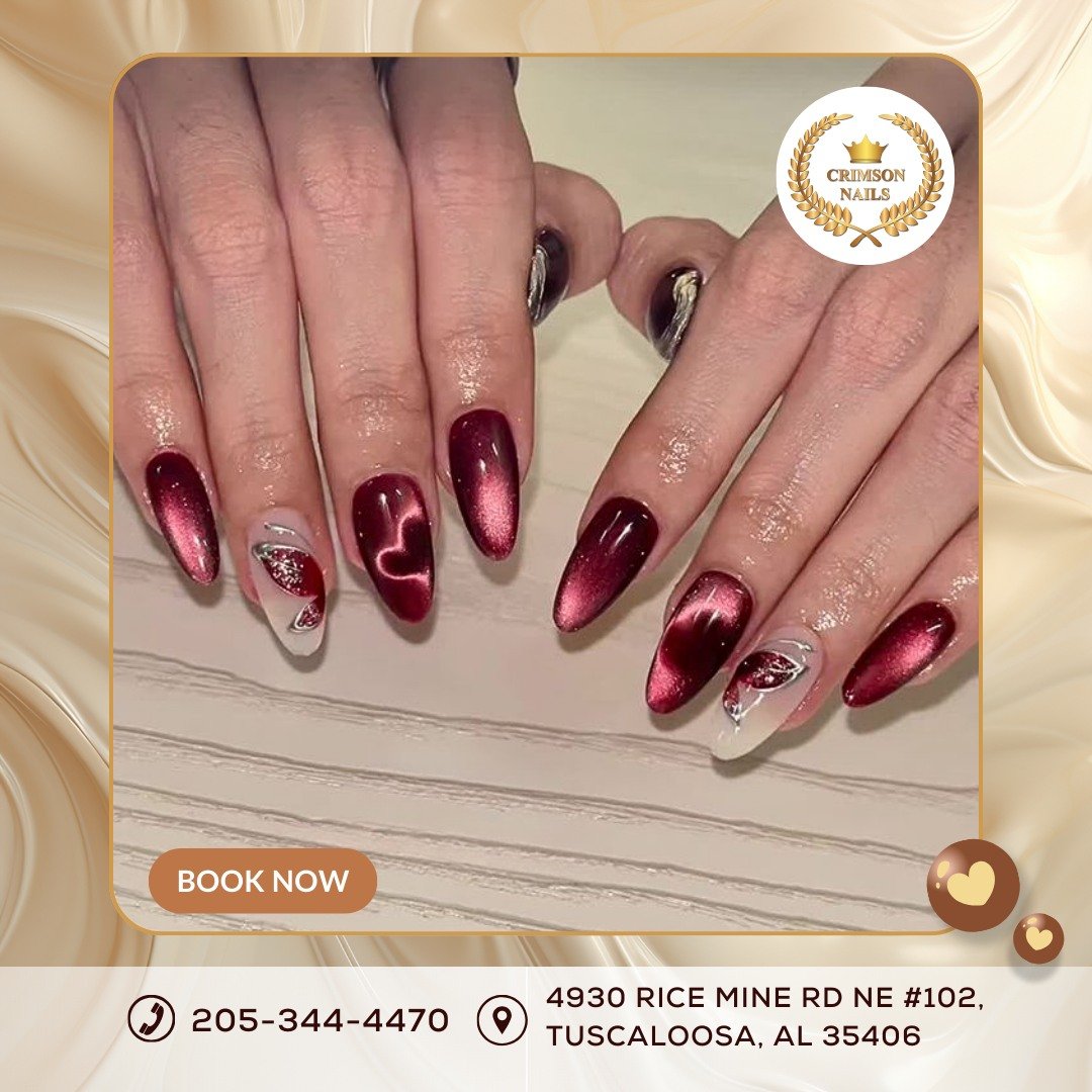 At Crimson Nails in Tuscaloosa, we specialize in professional nail care delivered with precision and comfort. From classic styles to modern designs, every service is crafted to leave you feeling confident, polished, and refreshed.